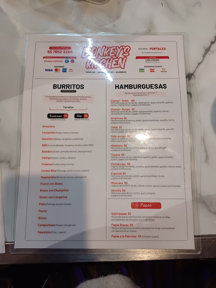 Welcome to Donkey's Kitchen (Suc. Portales), a hidden gem in the heart of Ciudad de México. Located at Sevilla 106b, this vibrant eatery offers a standout menu that caters to all tastes. Renowned for their succulent burgers, patrons like Alexis Flores leave feeling satisfied, while Jennifer Hernandez praises the delicious, seasoned natural fries that accompany their meals.