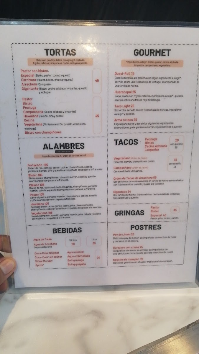 Bistec, pastor, tocino y queso. en delicioso pan tipo telera con ajonjolí tostado, frijoles refritos y mayonesa.
